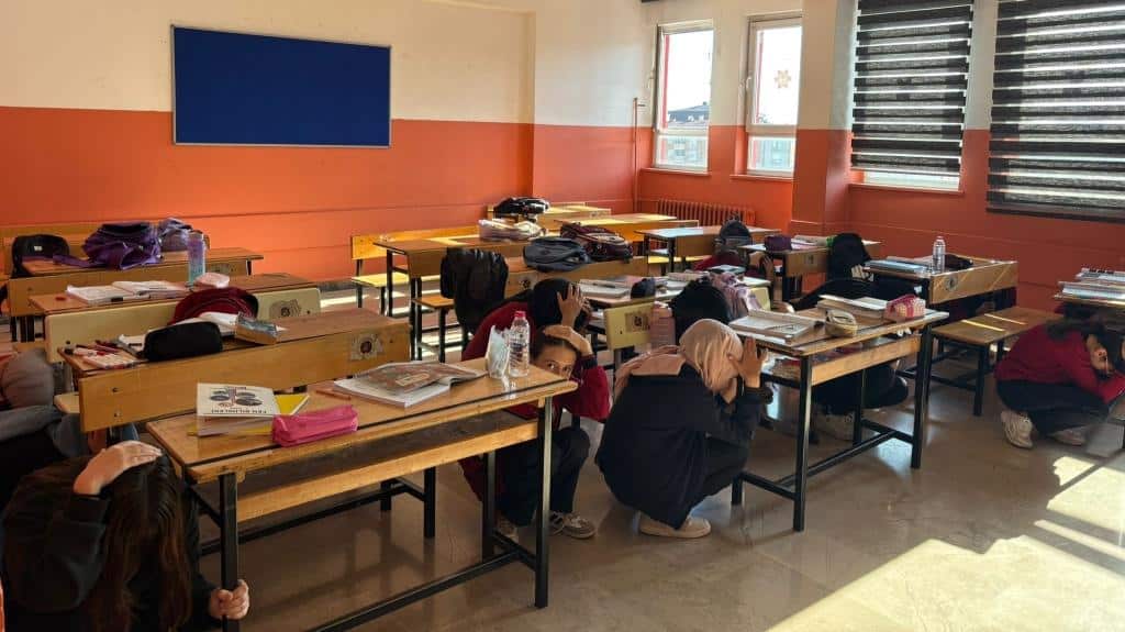 Okulumuzda, öğrencilerimizin deprem anında nasıl davranmalarını ve ne gibi önlemler almaları gerektiğini öğretmek amacıyla deprem tatbikatı yapıldı. Bilgilendirme aşamasında öğrencilerimize önce deprem konusuyla ilgili video izletildi. Ardından öğrencilerimizin öğrendiklerini uygulalarını sağlamak amacıyla da deprem tatbikatı yapıldı. Tatbikatta hayat ,üçgeni, çök-kapan-tutun gibi hayati uygulamalar gerçekleştirildi. Sonra da okul tahliye planı doğrultusunda öğrencilerin tahliyesi yapıldı. Son olarak toplanma alanlarında son bilgilendirme yapılarak tatbikat sona erdirildi.